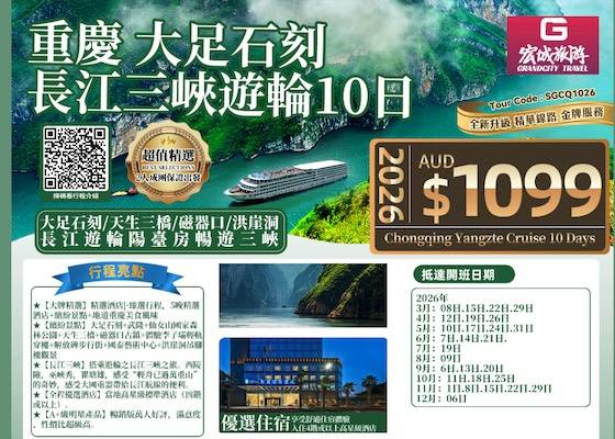 【超值精选】ZGM 中国 重庆大足石刻长江三峡游轮10日游-大足石刻/天生三桥/磁器口/洪崖洞/长江游轮阳台房畅游三峡